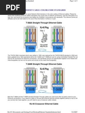 Directly Through Cable Color Code Utp Cable Color Code RJ45 Color Code Look for A B and Standard A Ethernet Crossover Cable or a Straight Throot Cable RJ45 or Registered Jack 45. Wiring scheme B or T568B is used for RJ45 wiring and utilises different wiring colours to scheme A or T568A. Check the order of the wires.